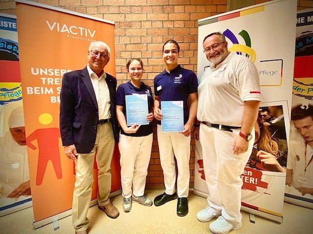 Beide haben im Endausscheid der Nationalmannschaft Pflege Deutschland vom 01.07.2022-03.07.2022 eine starke Leistung gezeigt. Sowohl in der Pflegeplanung als auch in drei zu absolvierenden Testprojekten zu den Themenbereichen Diabetes, Palliativpflege und Parkinson haben sie sich hervorragend geschlagen.